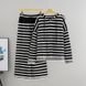 Korean Oversized Stripe Knit Set – Zip-Up Cardigan & Lounge Pants (Rayon-Polyester Blend, Free Size, Minimalist Two-Piece Outfit, Beige/Black)