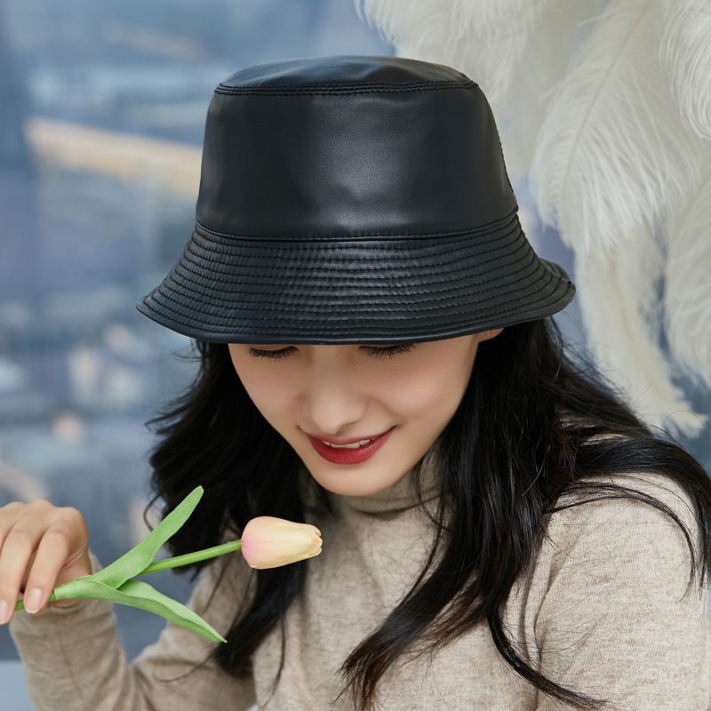 A Korean-style sheepskin protective bucket hat designed specifically for women, featuring a fisherman style, multifunctional and fashionable sun hat