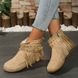 Large Size Rivet Fringe Metal Buckle Short Boots Autumn And Winter New Flat Warm Women's Boots