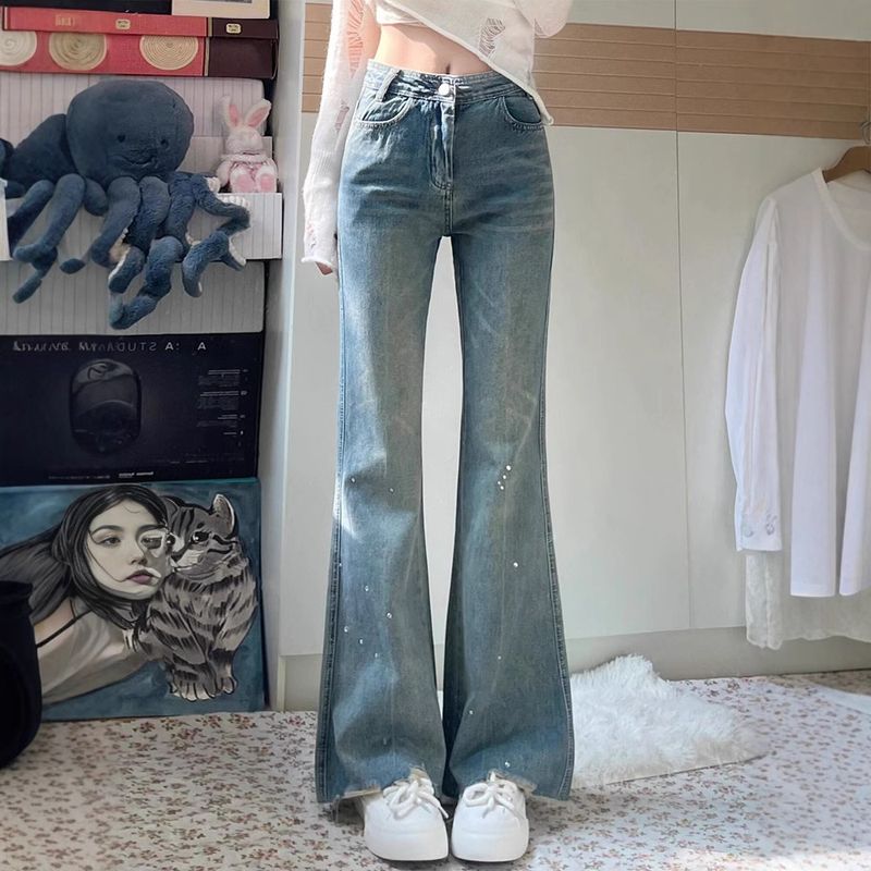 Light-colored Flared Jeans for Women, New Autumn American Style, High Waist, Loose Wide-leg, Slimming Frayed Straight Pants