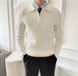 Long sleeved new half zip polo collar knitted sweater with a waffle top made of slim fit solid color yarn top
