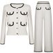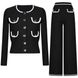This isn’t just a knit suit – it’s your go-to for effortless sophistication. The gold foil detailing adds a touch of luxury, while the straight-leg pants elongate your silhouette for a polished look.
