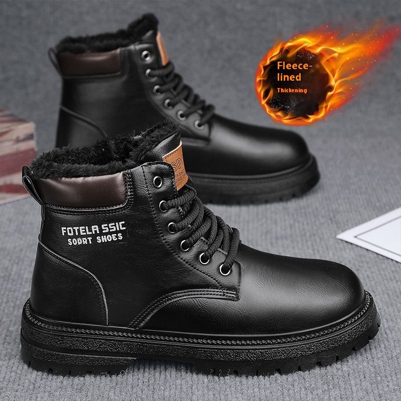 Martin boots for men in winter, with plush insulation and two cotton shoes. Black men's casual leather shoes and motorcycle work boots with fur and leather in one