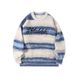 Men's Casual Knit Sweater Oversized Pullover Japanese Style Color Block Long Sleeve Winter Warm Crewneck Jumper