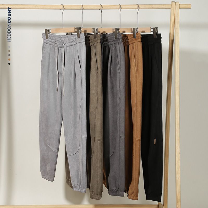 Men's Suede-Like Jogger Pants Retro Casual Tapered Pants With Drawstring Waist