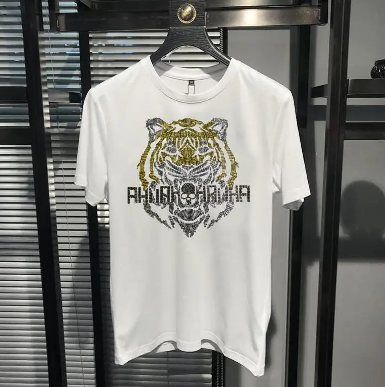 Hot Drill Tops T-shirt Brand Summer Personality Men Handsome Short Sleeves Man's Casual Tshirt 006