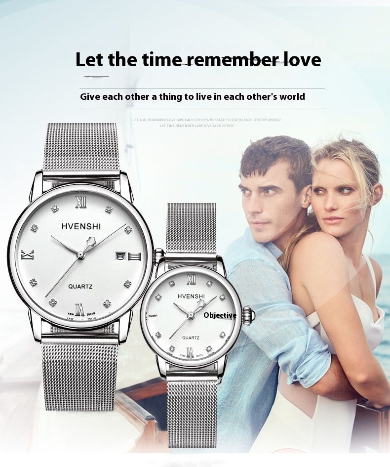 Men's Waterproof Fashion Women's Watch New Student Korean Edition Simple and Trendy True Belt Quartz Couple