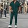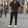 Men's Clothing Summer New Solid Color Button Pocket Shirt Short Sleeve Pants Two Piece Set