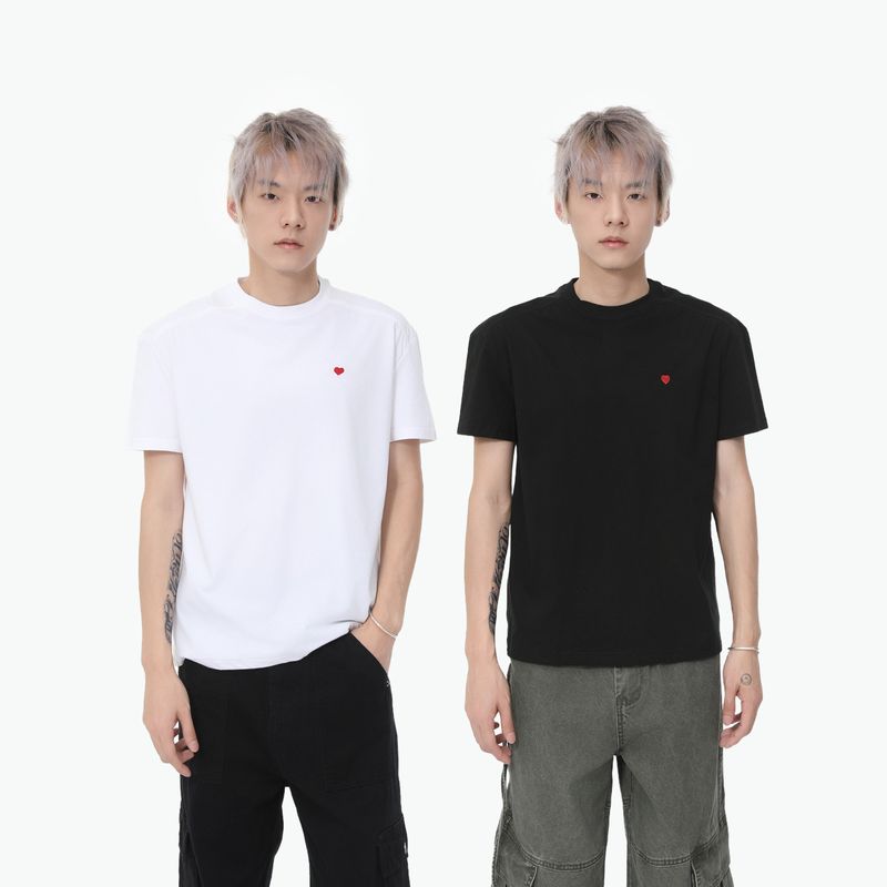 MTLCLOTHES Men's Clothing|Minimalist Style Embroidered Small Heart Solona Cool Feel Regular Shoulder Versatile Daily T-Shirt Casual