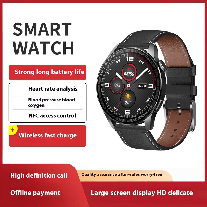Main selling points: ultra-thin round screen 1.39inch dual Bluetooth with call resolution of 360 * 360, Alipay offline payment, WeChat collection, PayPal, call voice assistant, NFC, wireless charging, heart rate, blood pressure, blood oxygen, breathing training, pressure test, Met, 5 sets of UI style switching, short remote control, SOS emergency contact, music playing, friend positioning, call, SMS, QQ, WeChat and other APP alerts