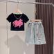 New 3D spray painted graffiti short sleeved colorful denim distressed pants set for girls in summer, children's stylish wide leg pants