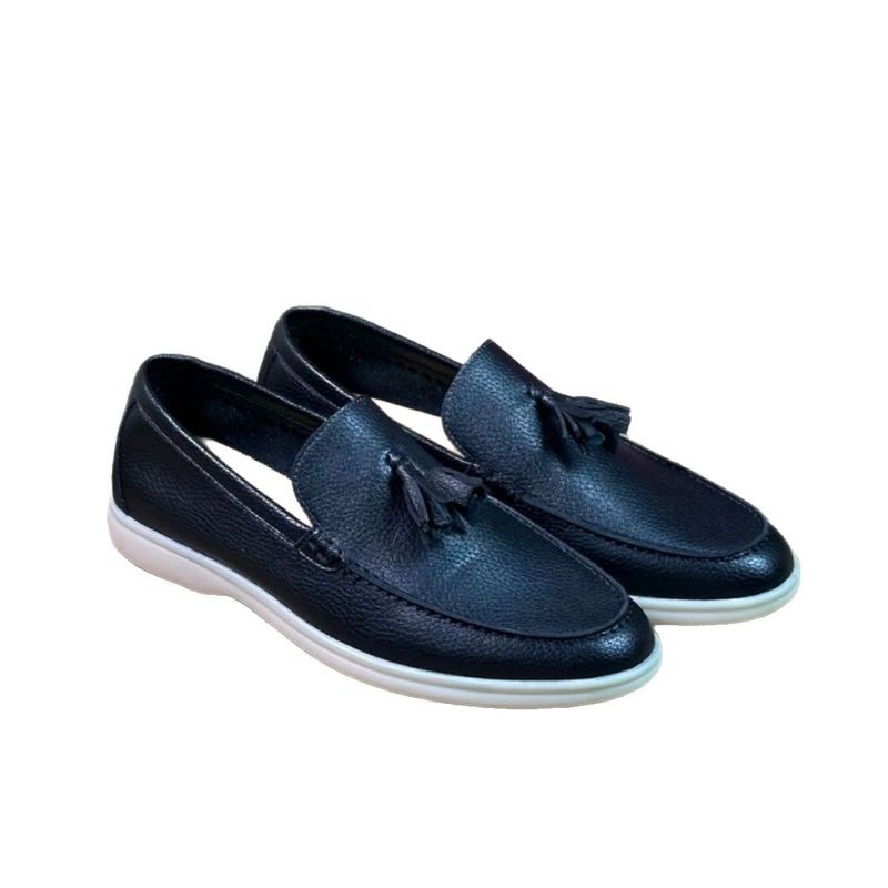 New European & American Style Men's Slip-On Fringe-Trimmed Cowhide Loafers Genuine Leather Comfortable Casual Slip-On Loafers