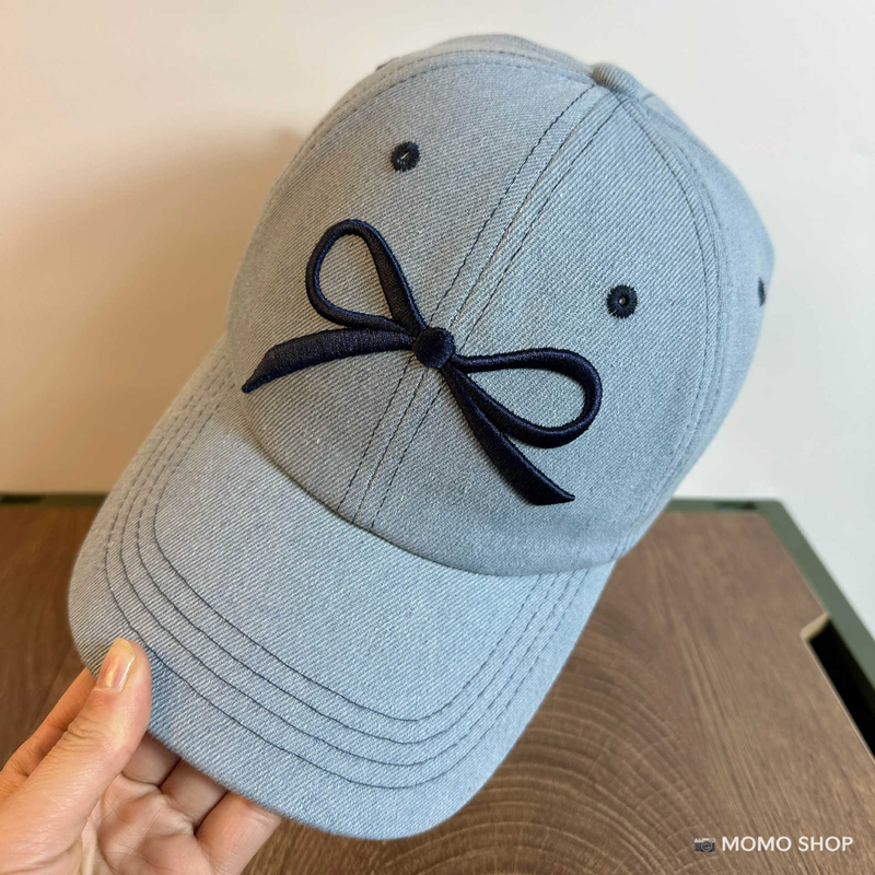 New Hat For Women In Korea With Contrasting Color Design, Sweet And Versatile, Bow Embroidered Baseball Cap, Korean Version Soft Top Duckbill Cap