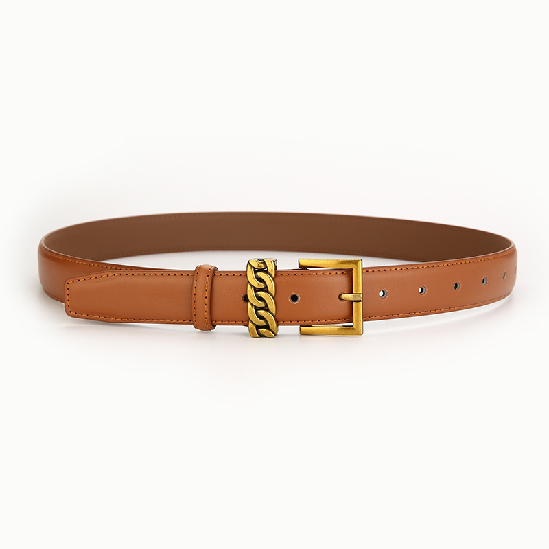 New Leather Belt for Women, Retro Port Style Decorative Belt, Alloy Fried Dough Twists Button Suit Sweater, Waist Shrinking, Thin Belt, Versatile 2023