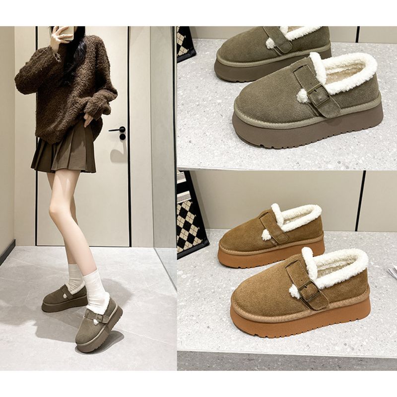 Women's Thick-Soled Genuine Leather 2025 Fall/Winter New Snow Boots, Slip-On Thermal Cotton Boots