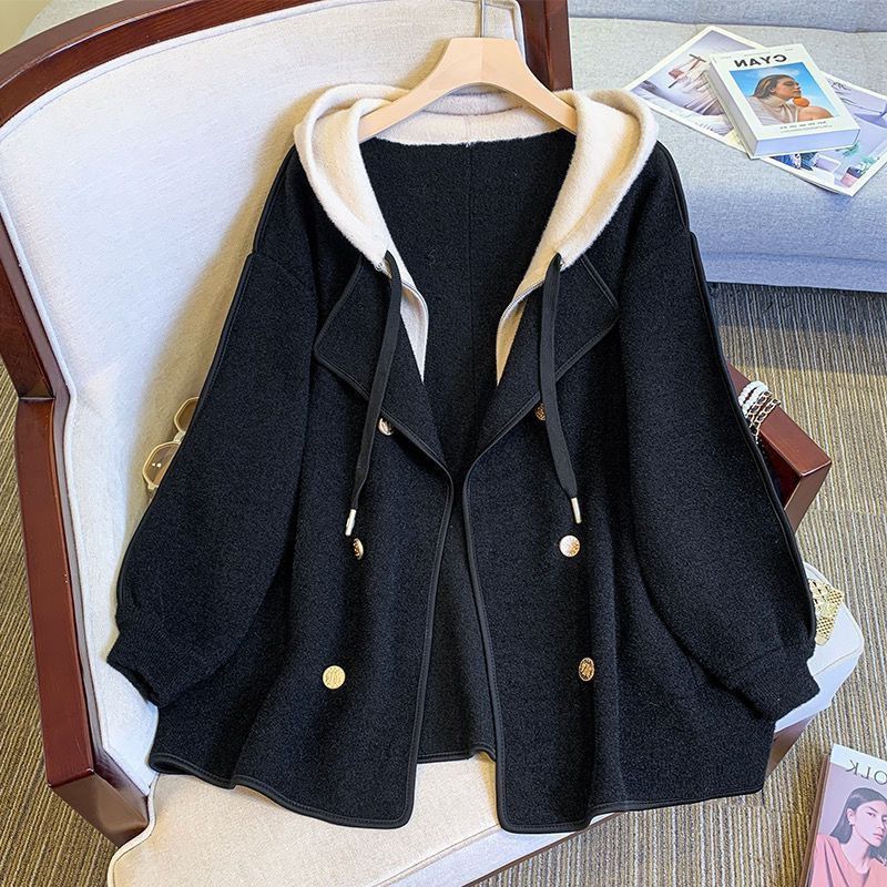 Oversized Hooded Coat For Women - Chic Two-In-One Wool Blend Jacket With Flattering Fit, Casual Elegance For Autumn & Winter (S-3xl, Black/Beige)