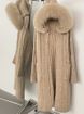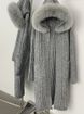 "Oversized Knit Cardigan With Real Fox Fur Trim – Longline Hooded Open-Front Coat (White/Grey/Khaki/Black, One Size Fits Most Winter Wear)"