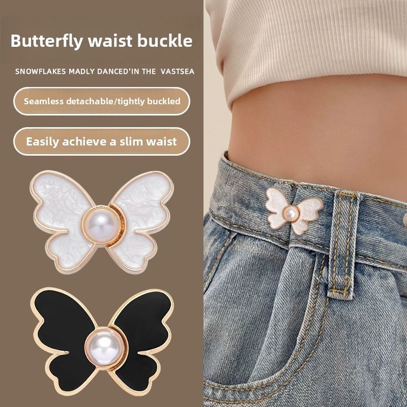 Pearl Butterfly Waist Buckle, Detachable, Nail-free Waist Button, Jeans Waist Circumference Smaller, Embroidery Machine Accessories
