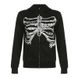 Personalized Dark Style Breastbone Print Hooded Cardigan Sweatshirt With American Niche Design, Loose Casual Jacket