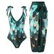 Plus Size Retro Tankini Set, Women's Plus Marble Print Tie Shoulder One Piece Swimsuit & Skirt Two Piece Bathing Suit