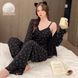 Pure desire storm point suspender chest cushion sleepwear women's autumn and winter brushed modal long sleeved three piece set sexy home clothes