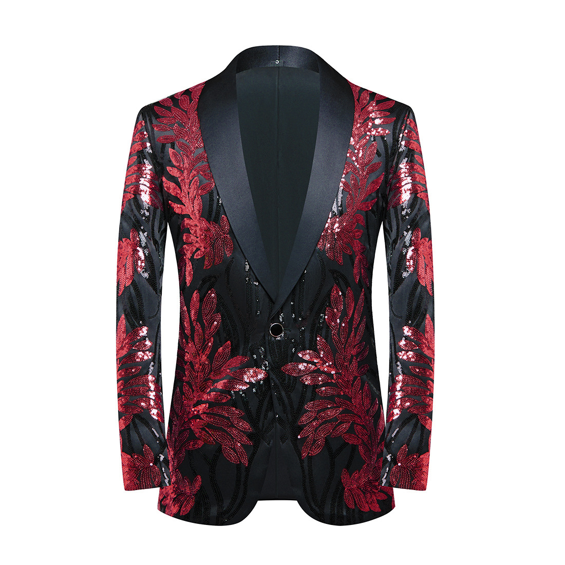 QFV507045555501<2 QFV507045555501<2 Men's High-Quality Gold Sequin Embellished Blazer Casual Suit Jacket Host Singer Performance Outfit