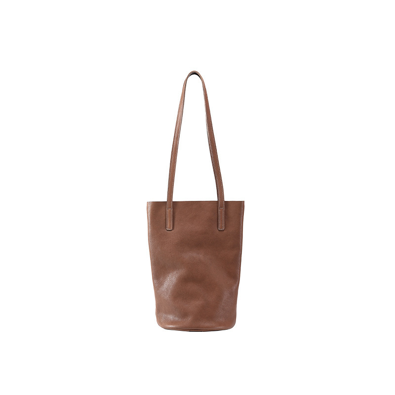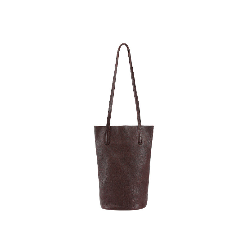 Qiu Zhen Lazy Water Bucket Bag, Genuine Leather Shoulder Bag, Unique Soft Leather Women's Bag, Commuting Top Layer Plant Tanned Cowhide Bag