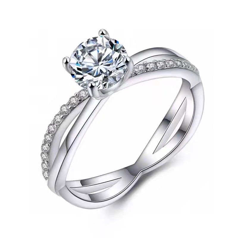 S Pure Silver Liu Shishi Same Four Claw Cross Ring, One Carat Mosang Stone Simulated Diamond Hearts And Eight Arrows
