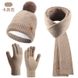 Knitted Hat Scarf Gloves Three-Piece Set for Women Autumn Winter Outdoor Warm Double Layer Yarn Knitted Hat