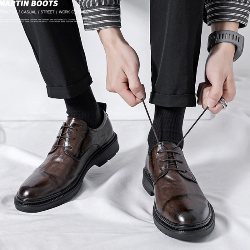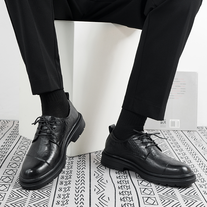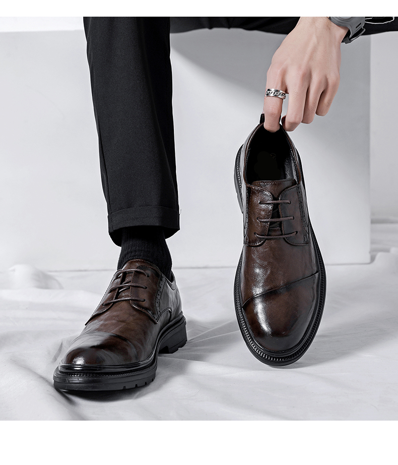 ShoeVault Spring Men's Casual Formal Business Style British Derby Leather Wedding Groom Shoes Men