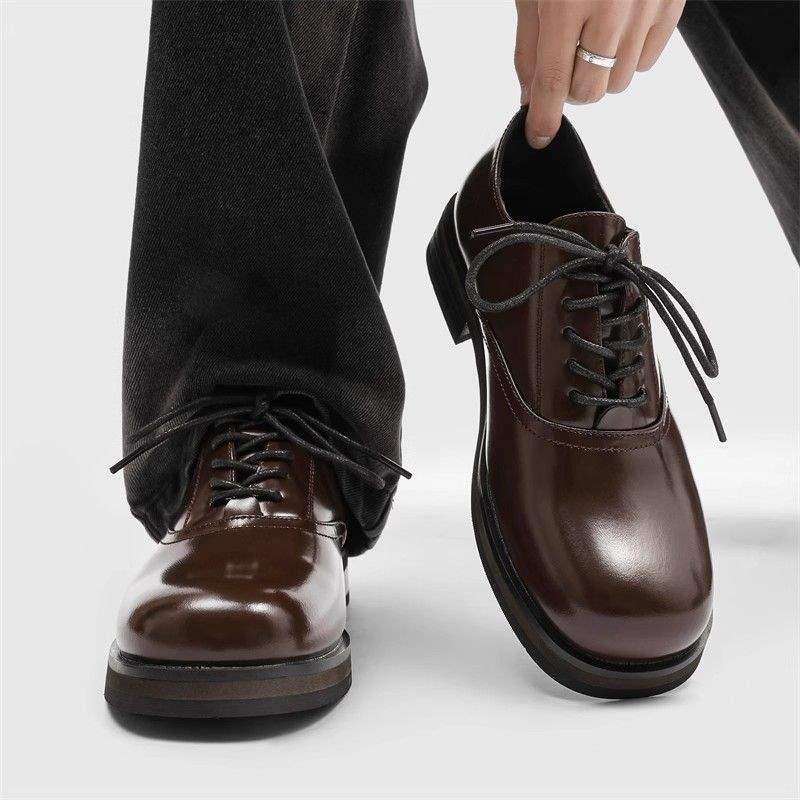 ShoeVault Square Toe Derby Leather Shoes For Men And Women, Business Formal Wear, Height Increasing, Wedding Brown Groom Style