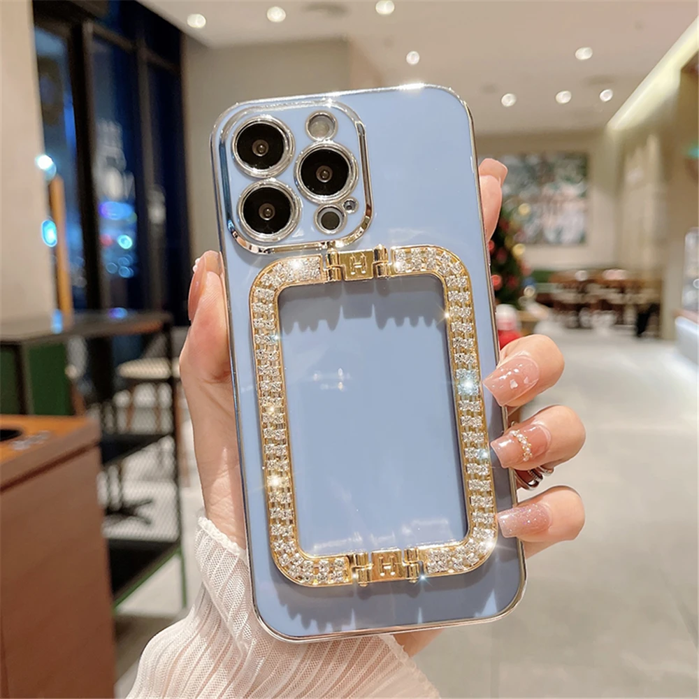 3D Crystal Square Holder Plating Phone Case For Xiaomi Redmi Note 12 10 11 Pro K50 K40 A1 Plus 12C 10X Stand Silicone