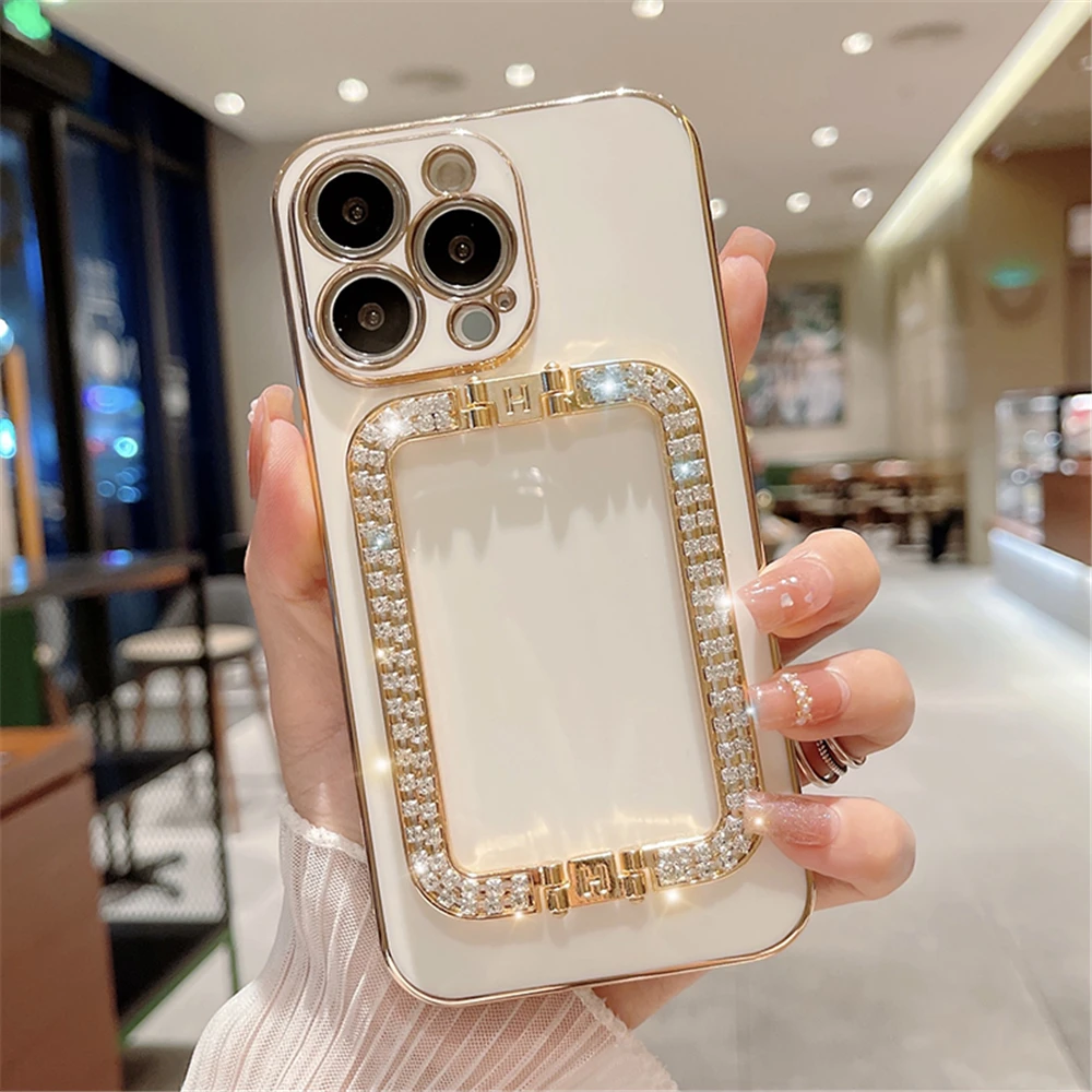 3D Crystal Square Holder Plating Phone Case For Xiaomi Redmi Note 12 10 11 Pro K50 K40 A1 Plus 12C 10X Stand Silicone Soft Cover