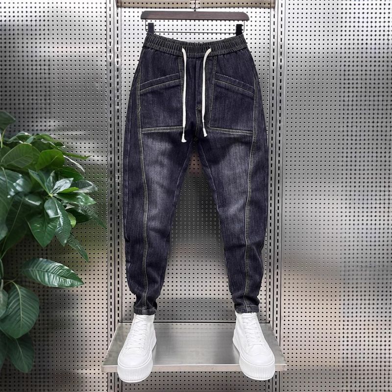 Spring and Autumn Men's Simple Jeans Fashion New Patchwork Jogger Versatile Slim Pants Jogger Pants Washed Harem Pants