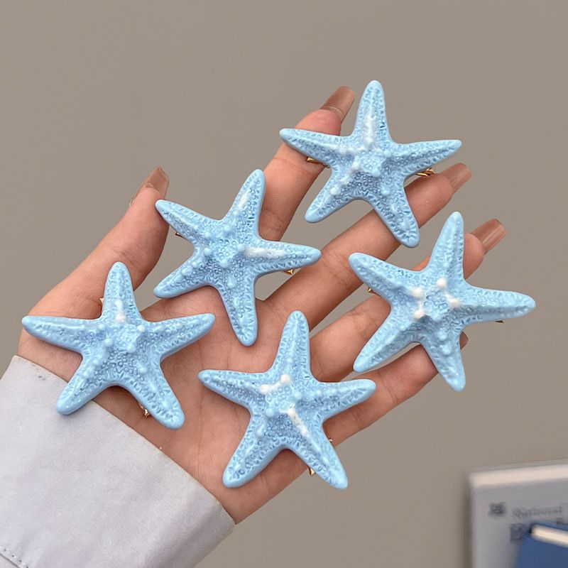 Personalized simulation starfish hair clip with a girlish feel, featuring broken hair, duckbill clip, vacation style hair clip, side bangs clip, and ins hair accessories