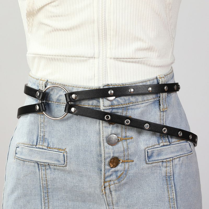 Studded Belt For Women, Fashionable And Versatile, Unique Double Strap Thin Belt, Punk Style, Ins Cool Outerwear