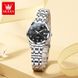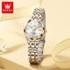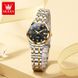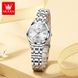 European Pinker model 9946, female, special function, night light, special function, calendar display type, pointer, suitable for women's style, fashionable, waterproof, waterproof performance, 30M movement type, mechanical movement origin, Chinese movement model, high-quality movement, high-quality mechanical movement, dial diameter 30mm, thickness 11.5mm, crown type, flat top conical crown, bottom type, transparent bottom, mirror material, coated glass clasp style, butterfly double button clasp material, stainless steel strap material, stainless steel dial shape, circular case material, metal origin, item number 9946, female packaging specifications, multiple quantity services