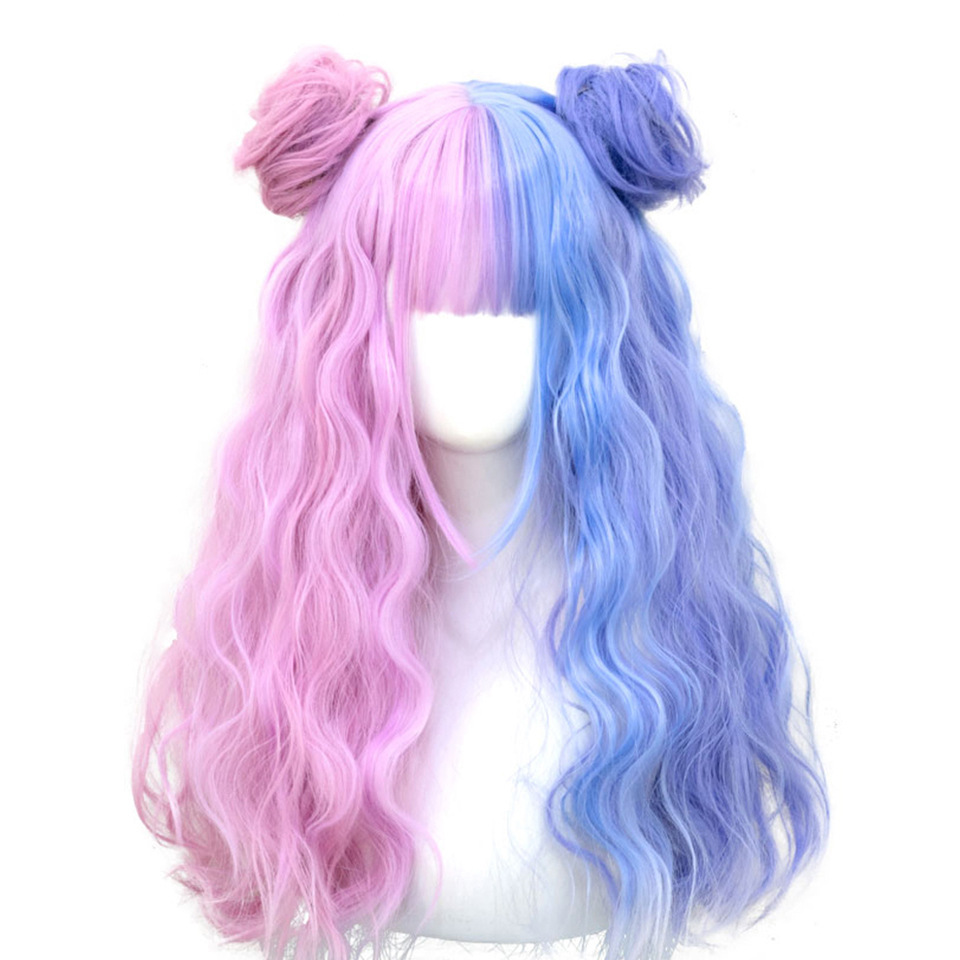 Synthetic wig Long Lolita headband dyed long roll hair fluffy little bun full head set