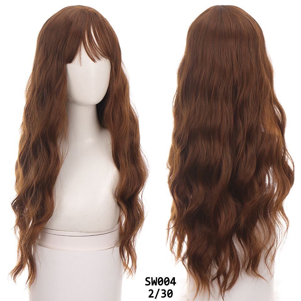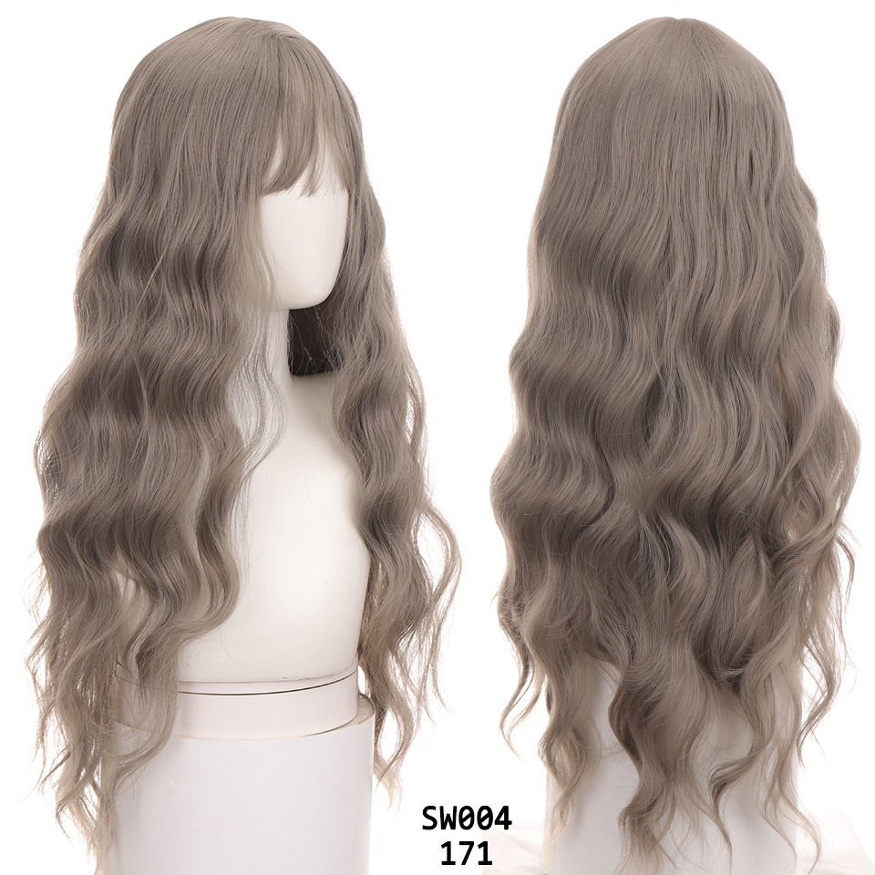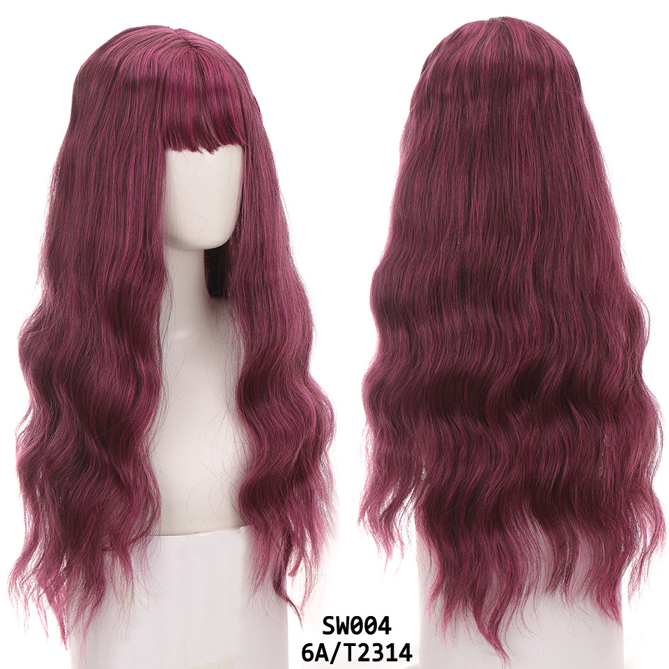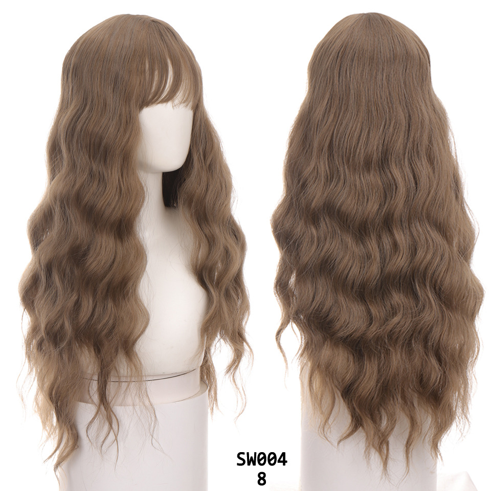 Synthetic wig with long curly bangs and fluffy multi-color synthetic fiber high-temperature silk wig head cover