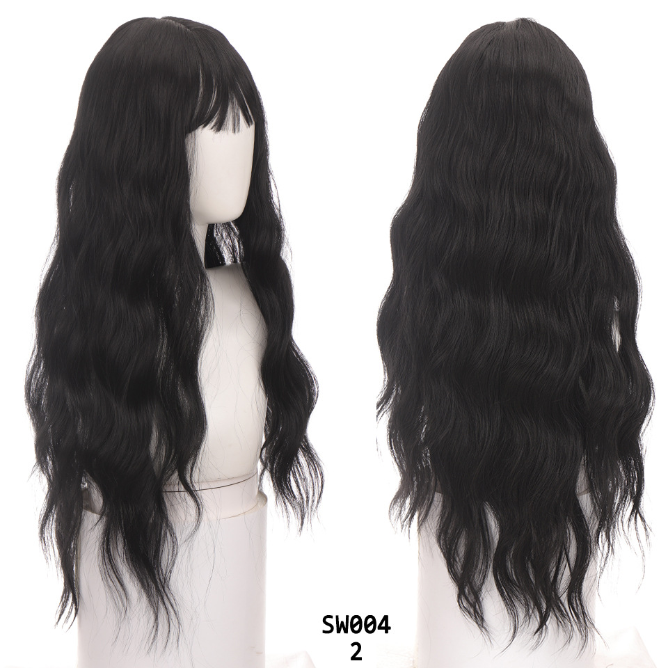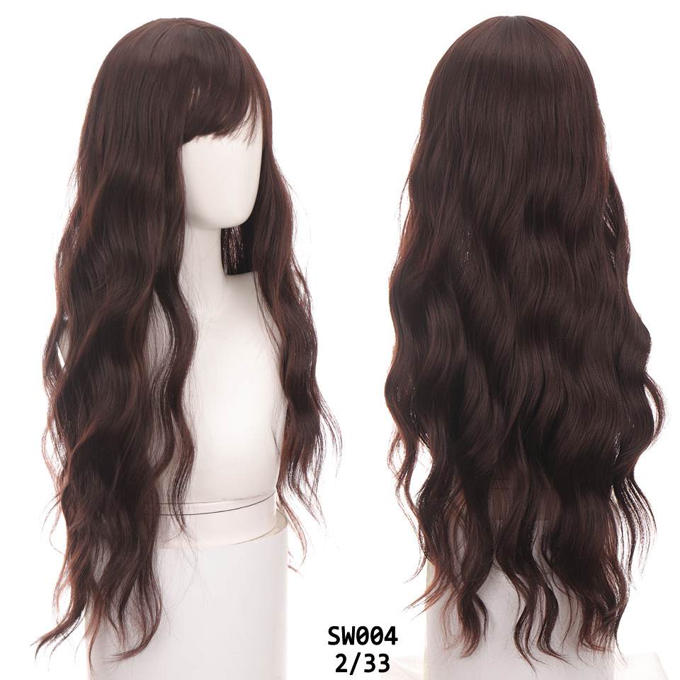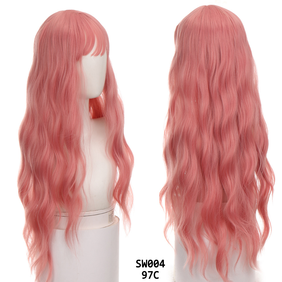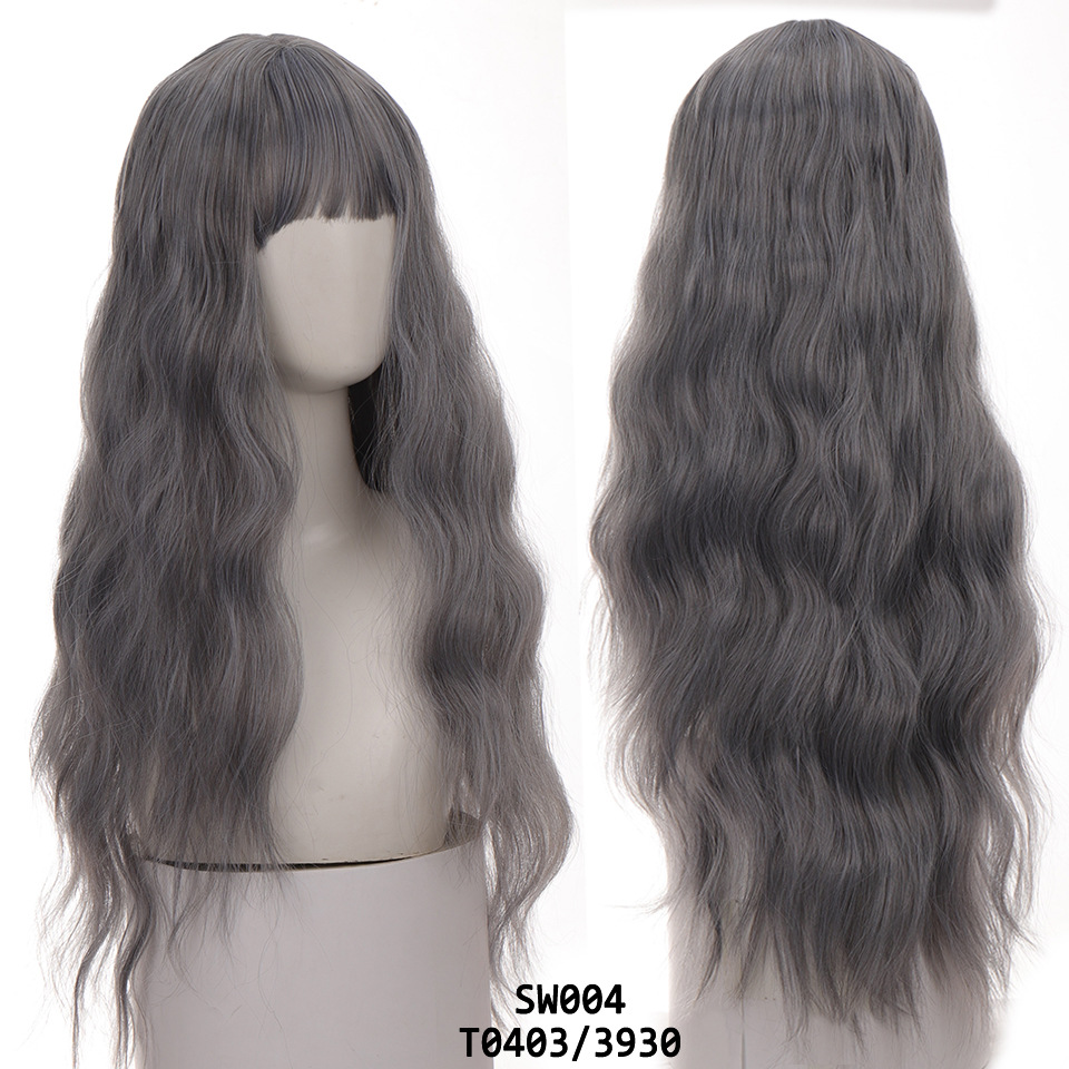 Synthetic wig with long curly bangs and fluffy multi-color synthetic fiber high-temperature silk wig head cover