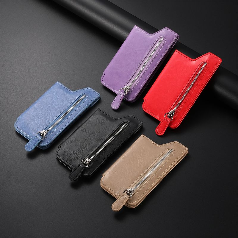 TechGlobe Hot Selling Simple Phone Flip Cover Multi-color Zipper Slot Stand Back Sticker Card Holder Creative Personality