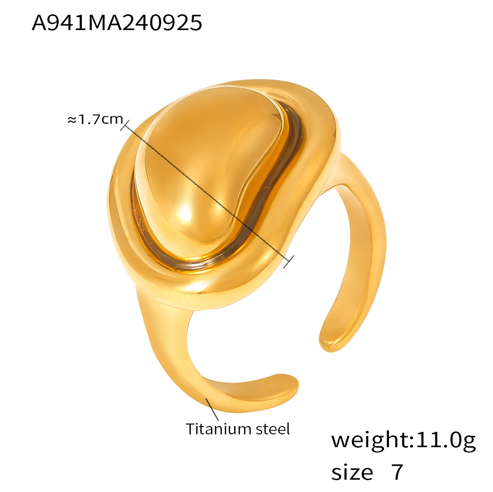Titanium Steel PVD Vacuum Cast Irregular Gold Bean Ring With Adjustable Color Retention