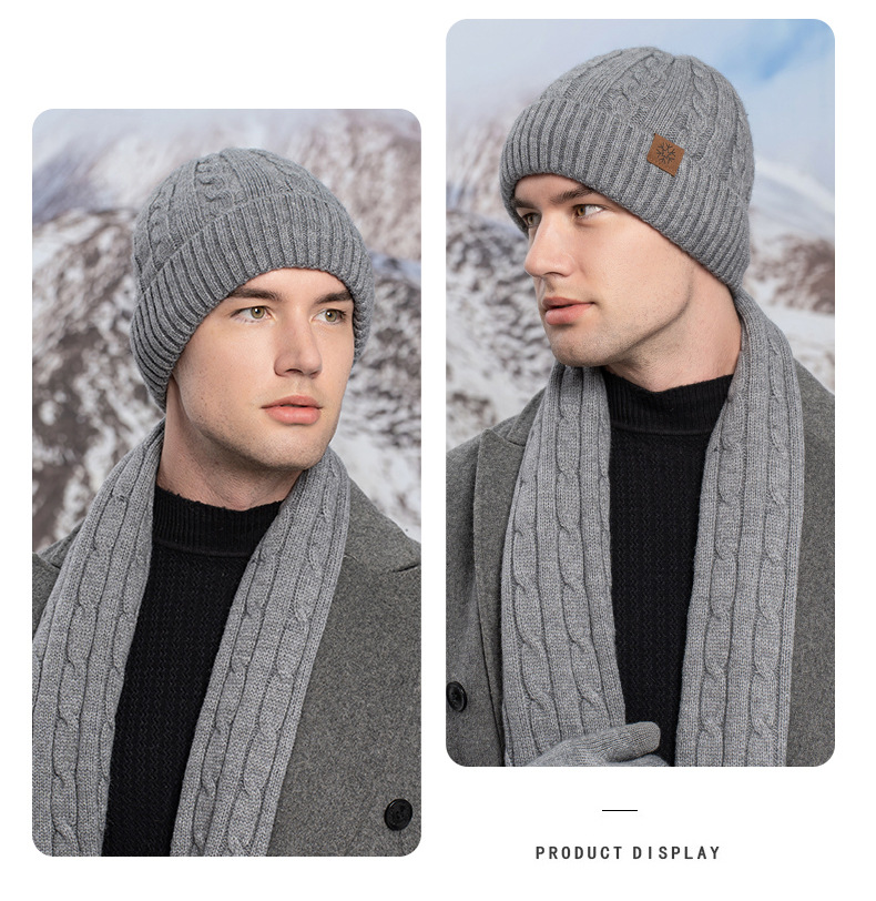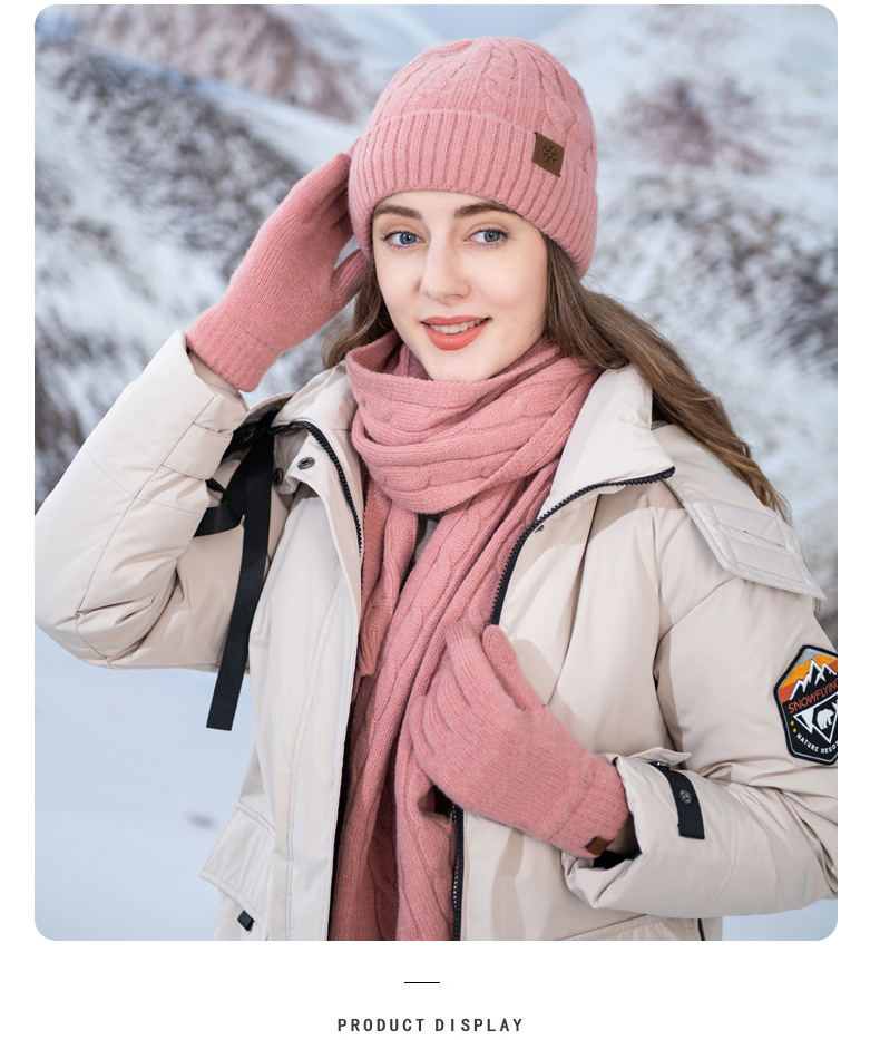 Unisex new knitted hat scarf gloves three piece set winter women's cold proof warm scarf three piece set men