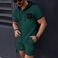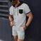 Men's Clothing New Waffle Men's Hooded Color Matching Short Sleeved Cardigan Casual Jacket Shorts Suit