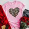 Valentine's Day short-sleeved large size couple T-shirts women's tops leopard print love print tops t-shirts for women