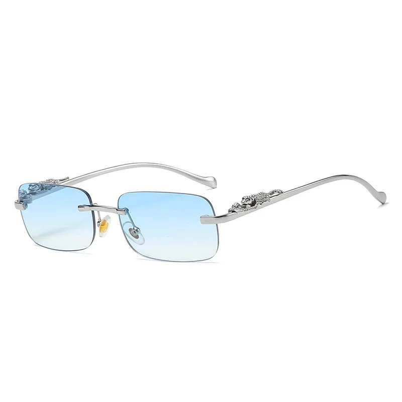 New Rimless Rectangle Vintage Metal Leopard Head Sunglasses Fashion Frameless Tinted Glasses Shades For Women Men