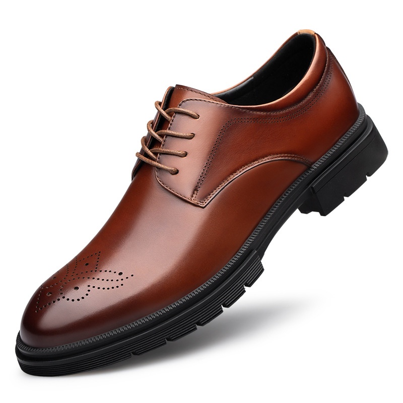 Voyage Men's 2022 Autumn Winter New Business Formal Derby Casual Leather Brogue Height Increasing British Groom Wedding Shoes