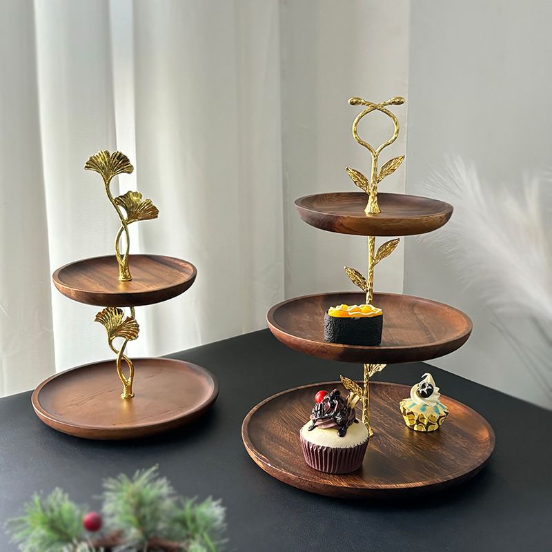Walnut Solid Wood Double Dried Fruit Tea Cake Tray Dessert Table Multi Layer Rack