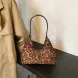 Women Suede Shoulder Leopard Print Hobo Zipper Closure Trendy Retro Handbag Work Shopping Bag