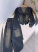 Women's Clothing Internet Celebrity Street Blasting Washed Blue Denim Two Piece Suit Pants Spring And Autumn New Women's Clothing
